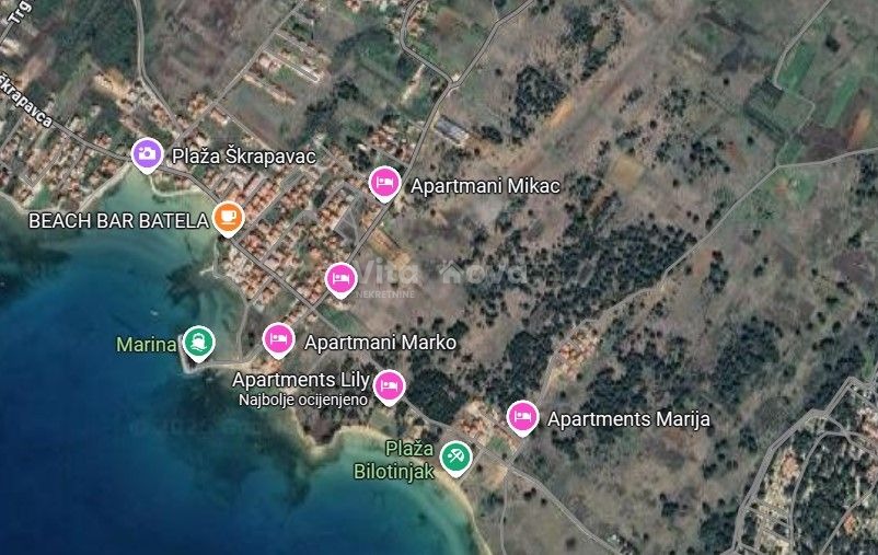 Prodaje se zemljište uz pristupni put, u blizini plaže Bilotinjak, i plaže Škrapavac, udaljenosti od mora oko 400 metara. Nalazi se u turističkoj zoni. Na zemljištu se nalazi i legalizirani objekt od cca 80 m2.