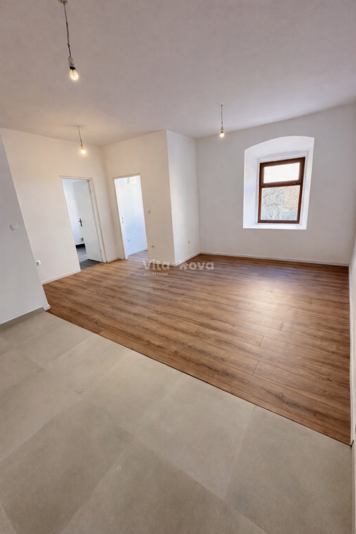 Prodaje se stan u prizemlju stambenog objekta u Obrovcu, s odvojenim ulazom. Stan je kompletno renoviran 2025.g., a sastoji se od kuhinje, blagovaonice, dnevnog boravka, spavaće sobe, kupaonice. Postavljene su nove pločice, laminat, kupaonski inventar. Useljiv je odmah. Vlasništvo je uredno, 1/1. Nalazi se u samom centru Obrovca, te se može iskoristiti i kao poslovni prostor.