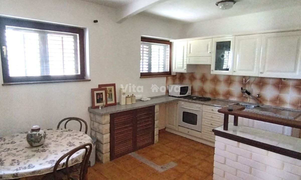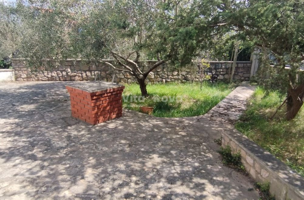 Uz samu kuću dolazi i garaža površine cca 40 m², ljetna kuhinja, kao i lijepo uređena okućnica s maslinikom i privatnim parkingom.